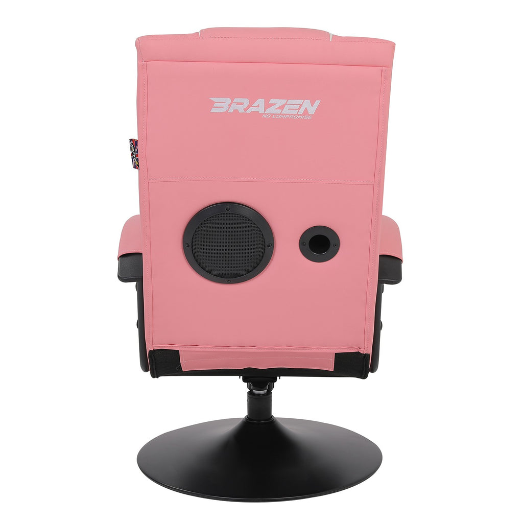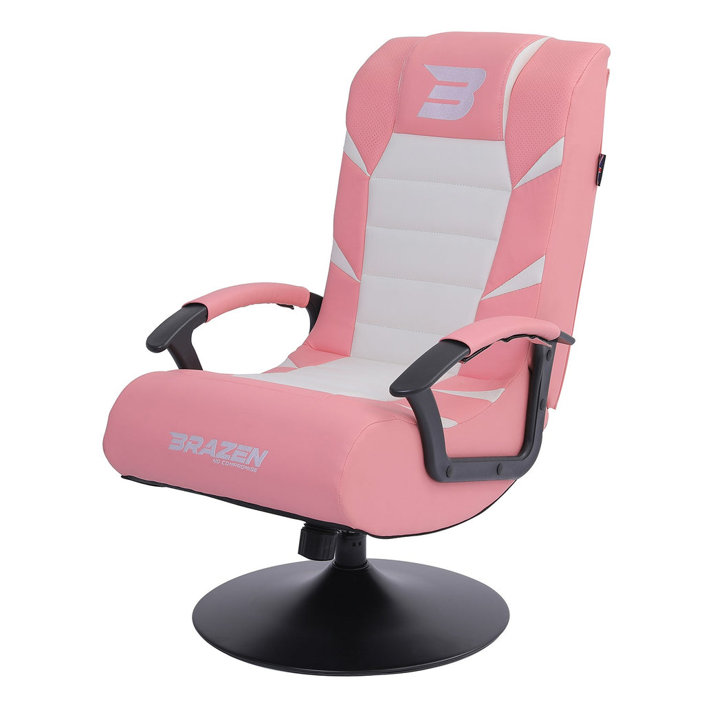 BraZen Pride 2.1 Wireless Surround Sound Gaming Chair is in our biased opinion the best pedestal gaming chair on the market for young adults! It is compatible directly or indirectly with all major gaming consoles, televisions, tablets and smart phones. The chair has both Wireless and hardwire connectivity options.