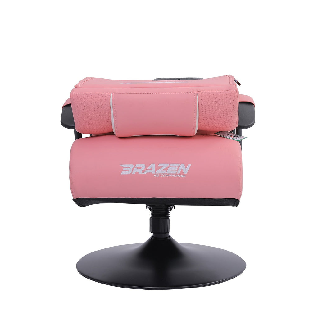 The Brazen Pride 2.1 Wireless Surround Sound Gaming Chair is another superb product from the largest British owned gaming chair brand. This is a British ergonomically and stylishly, uniquely and registered designed chair with comfort and durability as a prerequisite. The gaming chair is upholstered with faux leather and ample foam padding. It has solid fixed armrests and substantial metal disc base for maximum support.